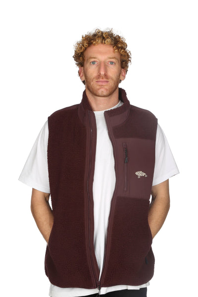 The Lure Metal Vest returns in a rich deep reddish-brown hue, inspired by autumn trails and late-afternoon light on the water. Crafted from plush recycled Sherpa fleece, it delivers warmth without the weight, ideal for layering over your favourite BamBooBay tee when the air turns crisp. The embroidered fish lure on the chest nods to life lived outdoors, the quiet patience, the thrill of the catch, the pull of adventure.